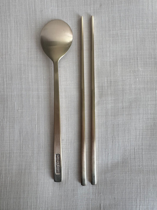 Royal Korean Bangjja Brass Spoon & Chopstick Wrapped in Seakdong Rainbow Bojagi